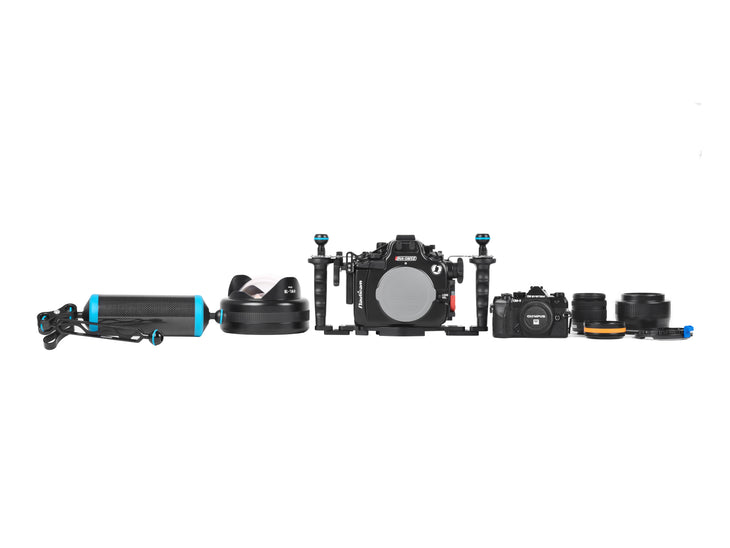 A camera system is only as good as the optics placed in front of it. Nauticam's extensive line of dome and flat ports support a wide variety of Micro Four Thirds lenses. For even higher image quality and versatility, the NA-OM5II can be used in conjunction with Nauticam's lineup of Water Contact Optics. For example, with the Olympus 14-42mm f/3.5-5.6 EZ Lens, the Nauticam WWL-1 provides a full zoom through ultra wide-angle 130º field of view.
