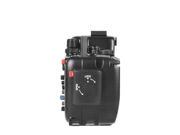 The Nauticam vacuum check and leak detection system is standard equipment on the NA-OM5II. When combined with the optional M14 Vacuum Valve II (PN 25624), this monitoring system continuously provides updates on the water tightness and safety of the housing. A simple coded LED lighting system informs the user if the vacuum is functioning properly or if the housing is losing vacuum. Leak detection is integrated into the same circuit, so if water enters the housing, an audible and visual indication will be given.