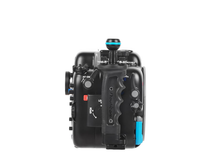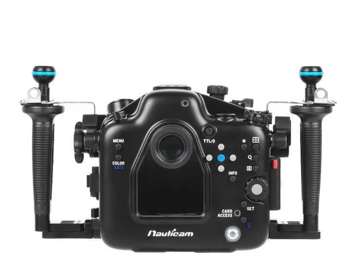 In true Nauticam fashion, essential controls are placed as close to the handles as possible, making these housings the most intuitive and user-friendly available. Our engineers strategically position controls where they’re needed most, rather than simply near the corresponding buttons on the camera. Dials feature rubberized finger grooves, and levers are designed for smooth operation.